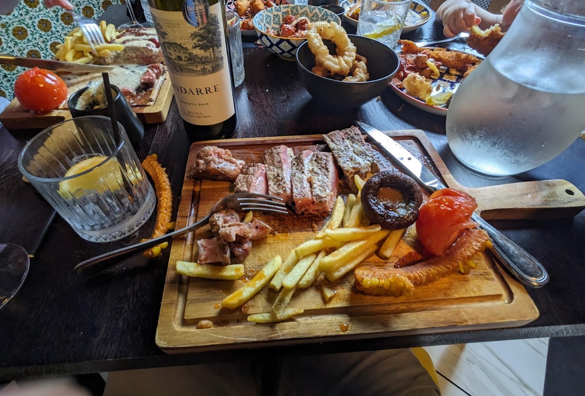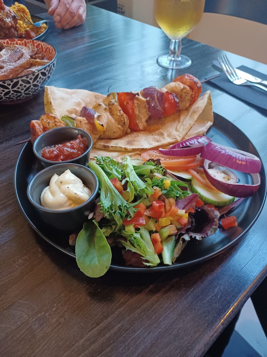 The restaurant’s diverse menu includes dishes such as Fillet Steak, cooked to perfection and served with a side of Mash Potato, King Prawn Pil Pil, and the incredibly popular Harrison Chicken Kebab. Seafood lovers will enjoy the Fish Tacos and crispy Fish and Chips, both served with a side of tangy Sweet Chilli Sauce. For a true Andalusian twist, the Prawn Enchiladas and Lamb and Saffron Rice are must-try dishes, offering a unique combination of spice and tradition.